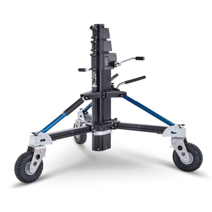 Den foldbare base, det kompakte design og de ergonomiske håndtag gør transporten let, mens den tunge konstruktion sikrer maksimal stabilitet, selv i krævende situationer. Dette stativ er ideelt til både studie- og on-location-optagelser.