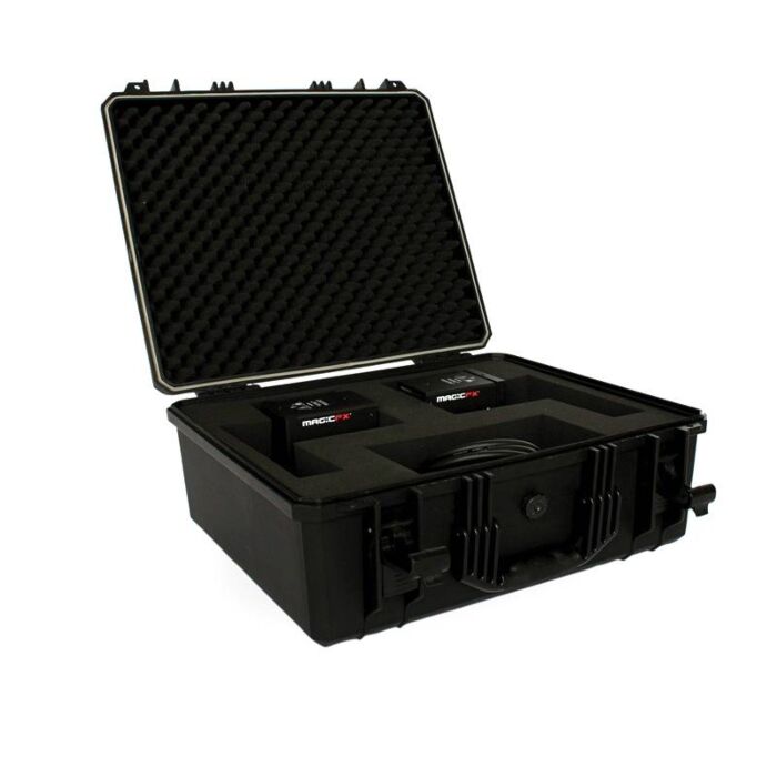Opbevar dine CO2 JET I i denne speciallavede case med plads til 2 stk. og kabler i høj kvalitet designet til sikker transport af dit MAGICFX hardware