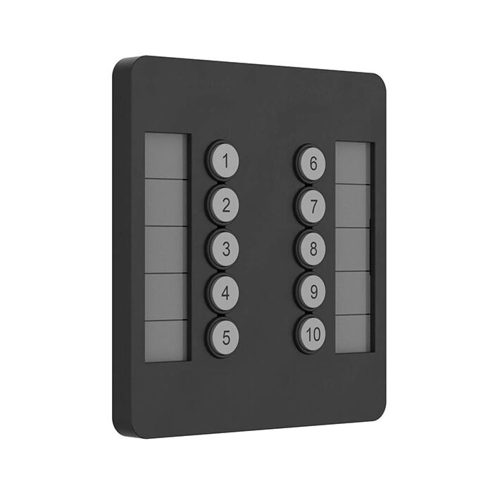 10Scene vægpladen har ti 10Scene udløserknapper med dobbeltfarvet LED statusindikator.