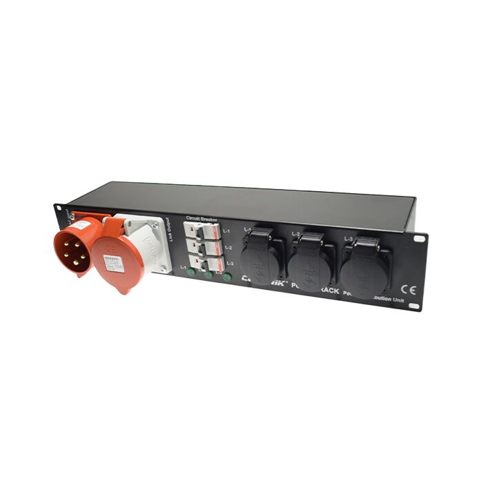 1x CEE32A In / Daisy chain, 6 x powerCON® TRUE1® TOP & 3 x Schuko Typ F Out