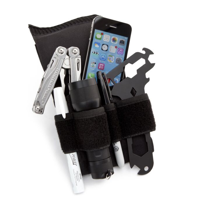 Pro Pocket har bl.a. plads til kuglepen, tusch, multi tool, lygte, Leatherman mv. Passer desuden til de mest populære smartphones på markedet.