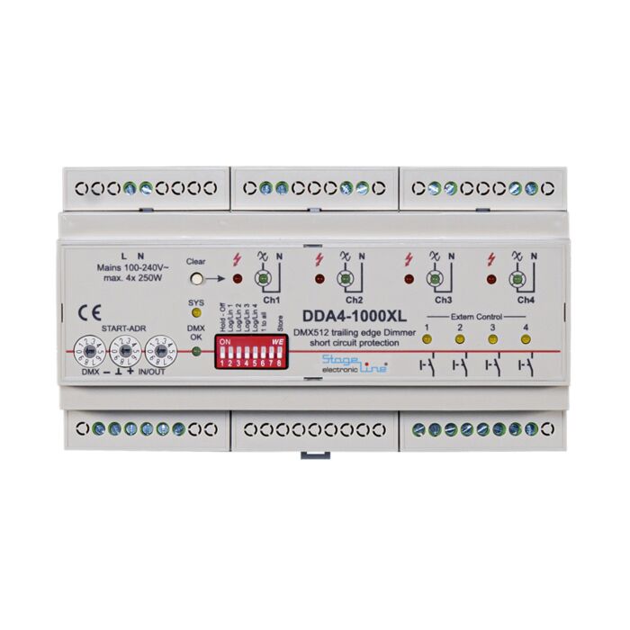 DMX Lysdæmper DDA4-1000XL 4CH, 4 x 250W For DIN skinne montering