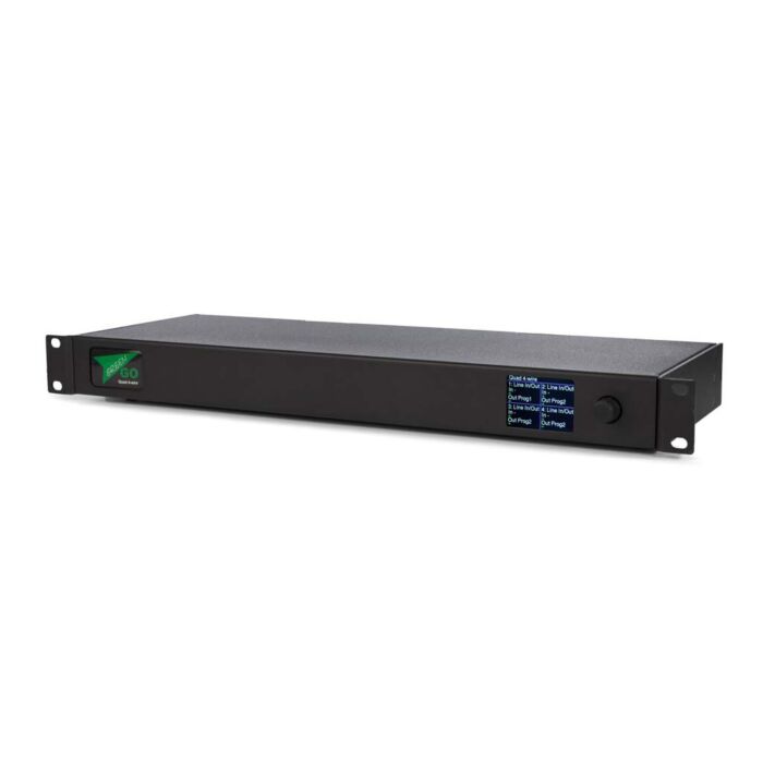 Green-GO Quad 4-wire Interface kan forbinde ethvert 4-wire analogsystem til dit Green-GO-netværkssystem. Derudover kan den også bruges som generel line in/out enhed i dit Green-GO system. På den måde kan du fx tage Program Audio ind i dit Green-Go system fra FOH pulten til koncerter eller konferencer, så alle brugere har lyden i ørene under koncerten eller konferencen.