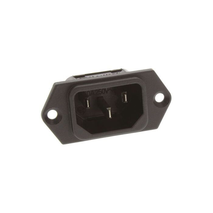 3 polet han IEC C14 10A stik for panelmontering med 8 mm maks. tykkelse.