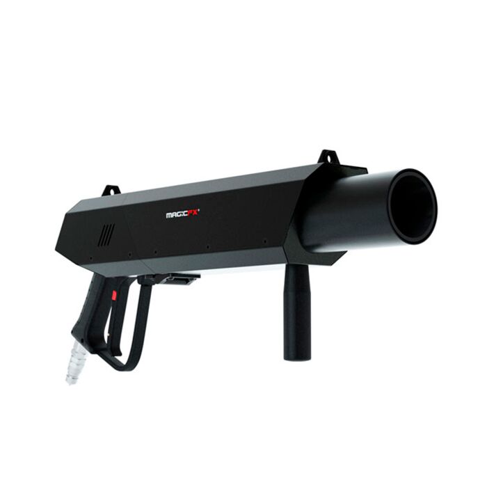 Kraftfuld CO2 Pistol, med denne pistol har du mulighed for at skyde konfetti, streamers eller t-shirts ud i en bestemt retning.