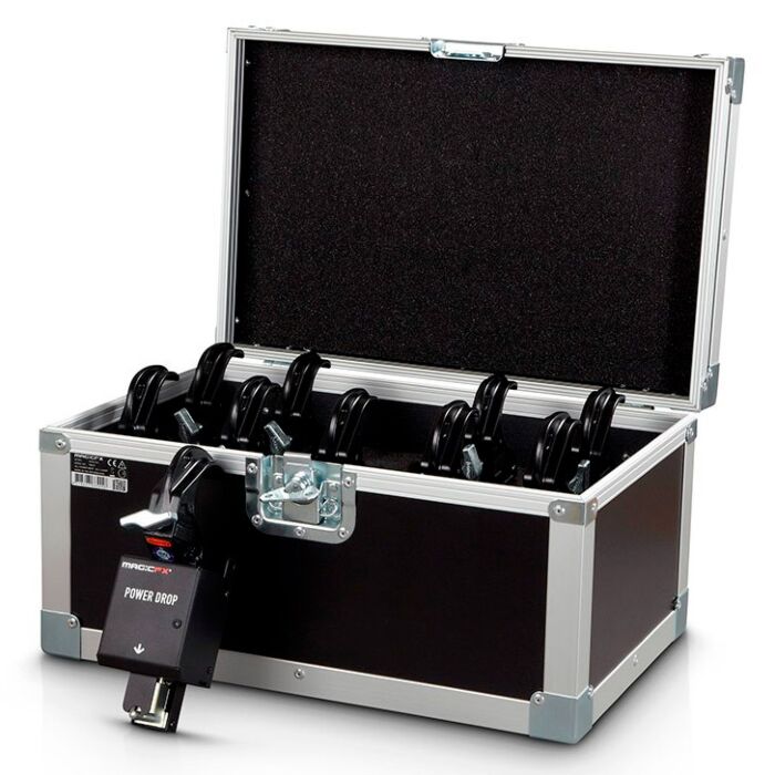 Power Drop kan monteres på truss og kan købes både enkeltvis eller som sæt af 10 stk. inkl. case til opbevaring.
