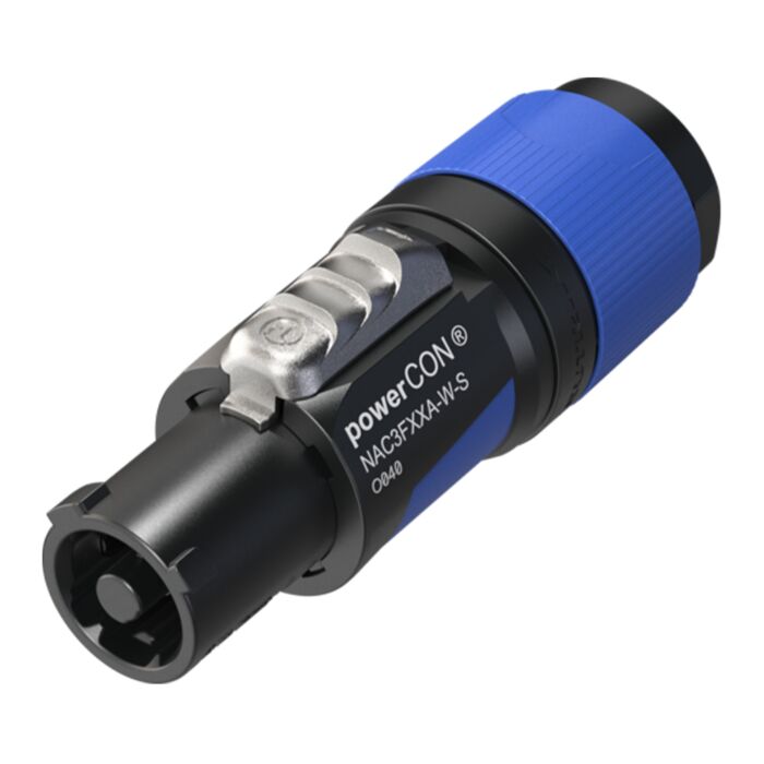 Powercon NAC3FXXA-W-S Kabelstik Hun / power in, Blå/Sort fra Neutrik.