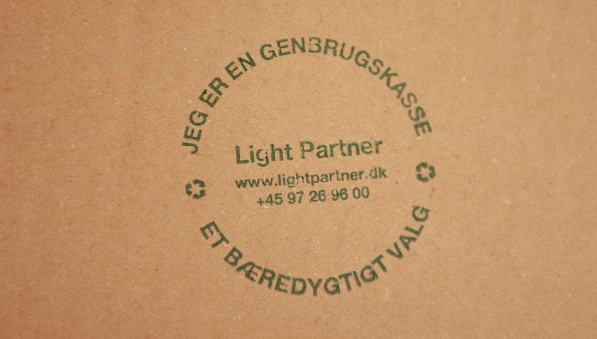 Lige fra begyndelsen har vi genbrugt papkasser til at sende vores varer afsted. Vi sætter vores eget genbrugsstempel på kasserne, så kunderne kan se, at det er en genbrugskasse.