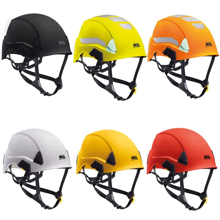 The STRATO helmet is very lightweight and comfortable, thanks to its CENTERFIT and FLIP&FIT systems, which guarantee that the helmet fits securely on the head. The adjustable-strength chinstrap makes it ideal for both work at height and on the ground. The unventilated outer shell protects against electrical hazards, molten metal splash and flames. With its potential for integration of a Petzl headlamp, hearing protection, and multiple accessories, it is an entirely modular helmet, thus responding to the specific additional needs of professionals. The high visibility version features a fluorescent outer shell with phosphorescent clips and reflective bands, for optimal visibility of the worker, day or night.