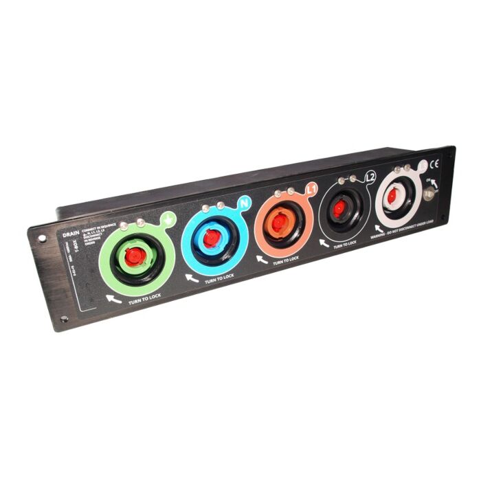 Derudover har den en sluttefunktion, som man kan bruge til at tilslutte en hovedafbryder, som sikrer, at man ikke kan tage stikkene ud, når der er strøm på. Boksen kommer som standard i et flanged panel med powerlock ind på fronten. På bagsiden sidder der M12 gevind bøsning der medfølger bolte til montering af kabler med kabelsko.