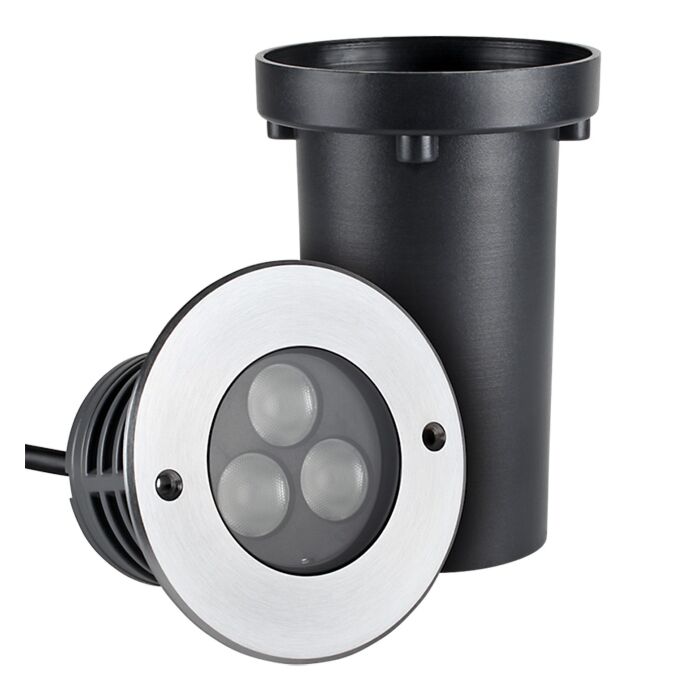 ProLED nedgravningsspot til inden- og uden- dørs brug. Armaturet kan tåle et tryk på op til 2.500Kg, så den kan anvendes til alt fra montering i gulv, fliser, vægge og loft til nedgravning. Armaturet er produceret i rustfrit stål og aluminium for at sikre optimal levetid. Spotten giver et varm hvid lys med en farvetemperatur på 3.000K og har en RA/CRI-Værdi på +80, så den kan anvendes til blandt andet dekoration og arkitektonisk belysning. Spotten leveres med 0,5m tilgangskabel, samt et monterings plastikhus.