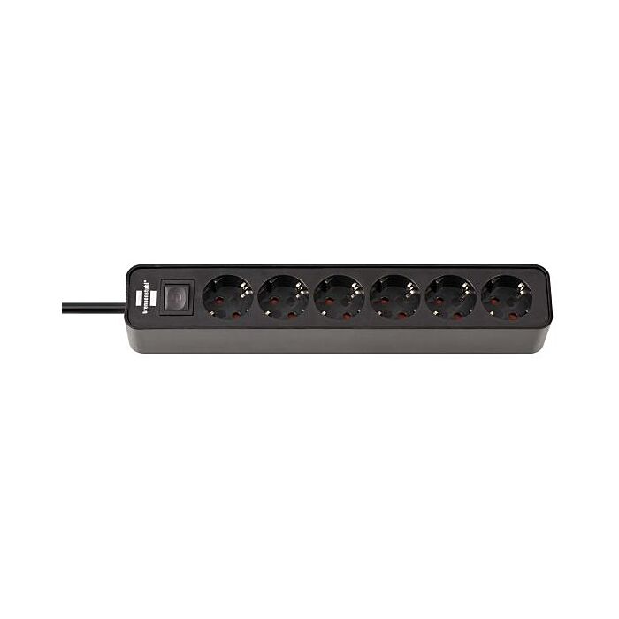 Schuko 6-stikdåse i sort med 1,5 meter kabel og afbryder.