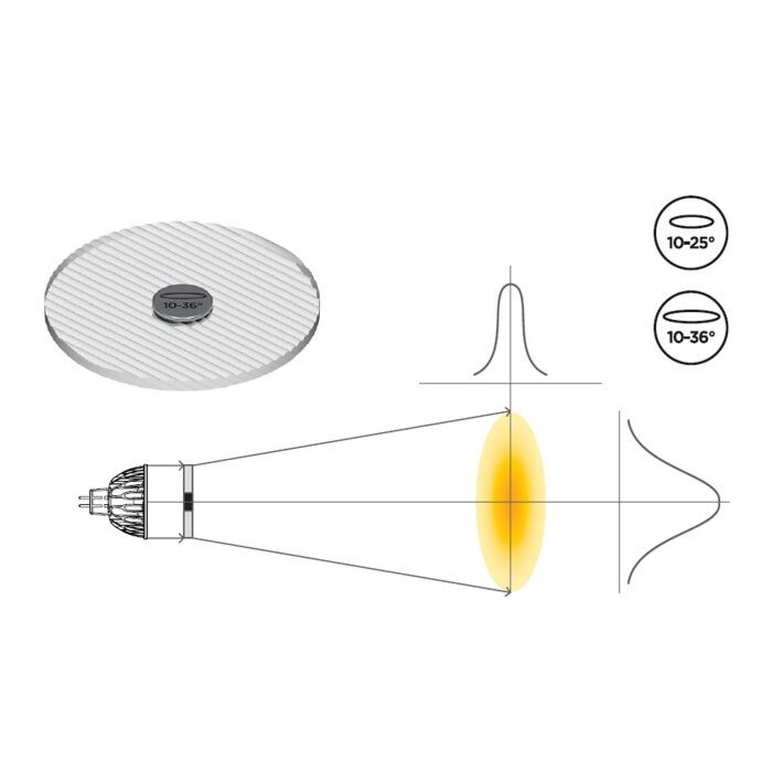 Soraa SNAP Linear linse, spreder dine Soraa 10° lyskilde ud i en asymmetrisk kegle på ca. 10° x 36°. Perfekt til toplys på trapper, wash på vægge og belysning af asymmetriske objekter.