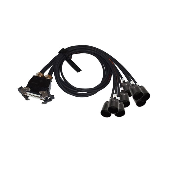 Udtagspisk ILME 16 Pol Han > 8 X 3 Pol DK Hun stik. Alle stik er sorte. Effektiv kabellængde: 1 meter